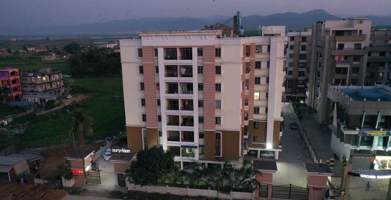 A residential project in Khanamukh, enjoy the shimmer of the glinting sun and many bird species that frequent the area from their balconies which are located near the Deepor Beel.